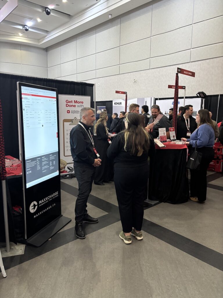 MaxxCharge was proud to support the event by providing one of our interactive touch screens, helping Wolseley engage buyers and demonstrate their website in a dynamic and hands-on way. The screen offered attendees the chance to explore product options, browse resources, and connect directly with the tools Wolseley provides every day.
