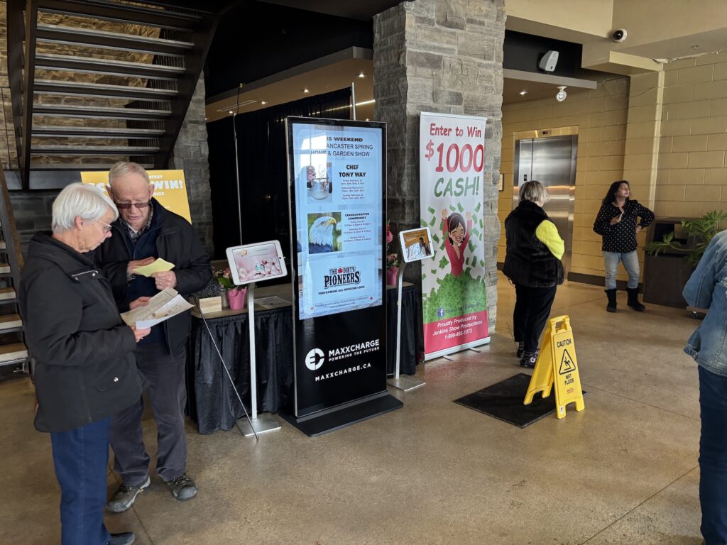 We kicked off the season at the Ancaster Fairgrounds from February 20th-22nd, where our sleek 55″ Charge and Touch Screens were placed throughout the venue to keep attendees powered up and engaged.